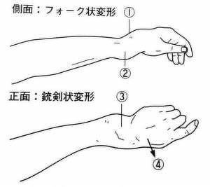 手首の少し上で変な曲がり方をしているのが確認できます。(フォーク背状変形と言います)