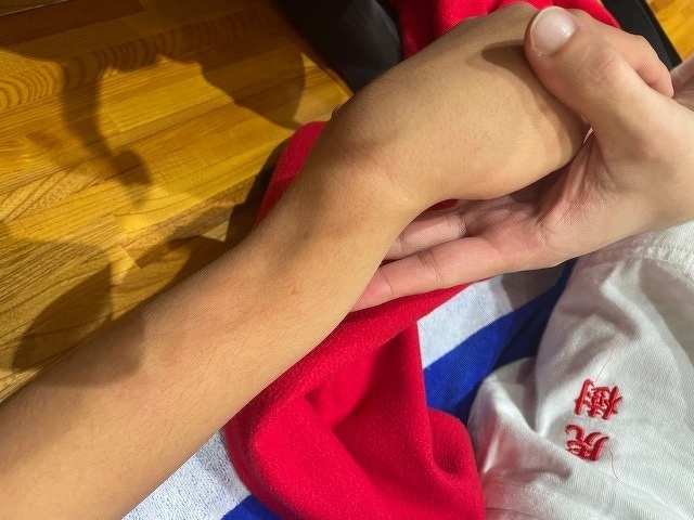 上の写真は柔道試合中に発生した左前腕骨(橈骨)下端部骨折(Colles骨折)です。