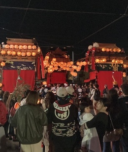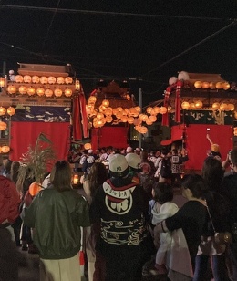 まずは前夜祭という事で夜に山車に提灯をつけて練り歩くという事でなんとも幻想的な感じで素晴らしかったです。