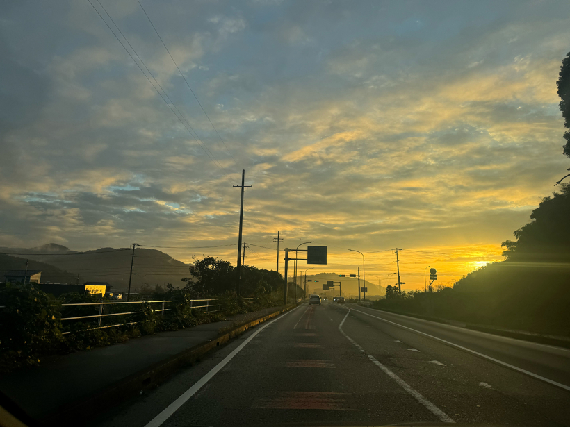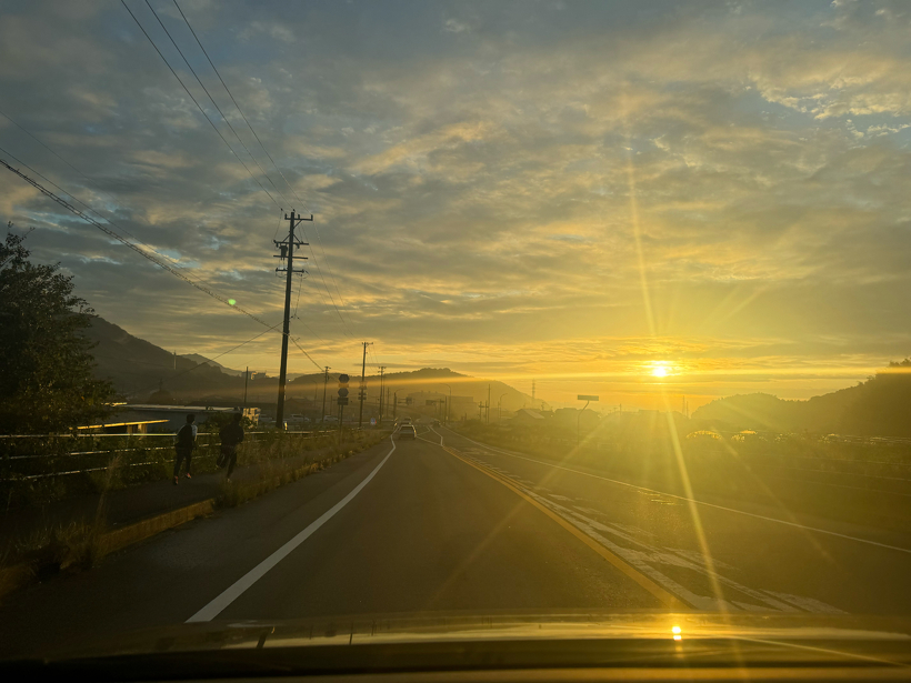 まずは朝早く出発したので綺麗な朝日が上ってくるのを正面に見ながら運転していき、豊川稲荷へ行く手前で御油の松並木という所で散歩してから豊川稲荷へ向かいました!