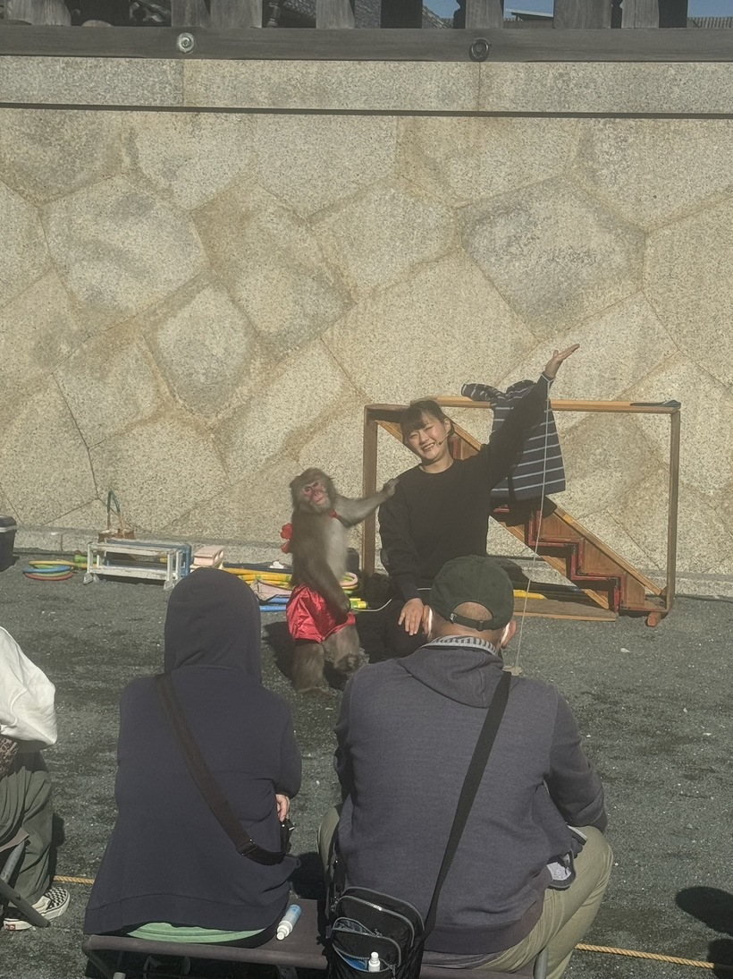 久しぶりに見る間近の猿芸は面白くてついつい見とれてしまいました。