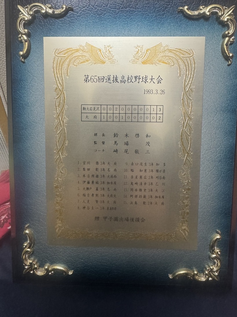 平成5年第65回センバツ高校野球野球大会に大府高校の選手として背番号12で出場しました。