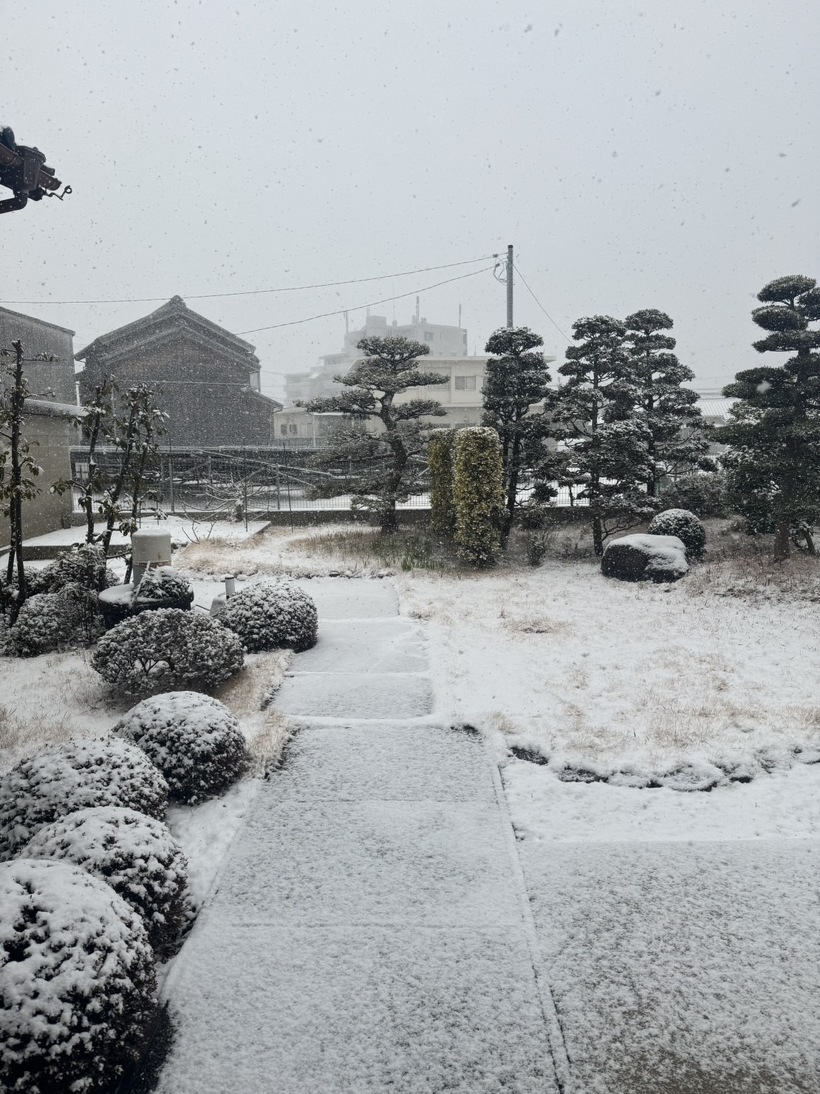 次の週は一年ぶりに雪が降り積もり道にまで積もり接骨院の庭にもきれいな雪化粧になりました。やはり一年に一回は雪が積もりますね!