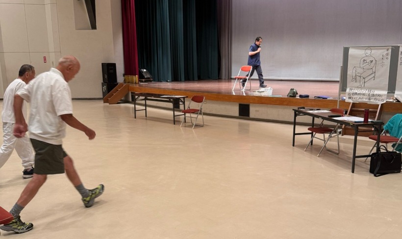 1回目は踵落としと膝伸ばしを中心に説明した後で実際に行ってもらい最初は頭では理解してもらっていても実際動かすと難しいといいながらしばらく動かしているうちににスムーズに動かせてきました。