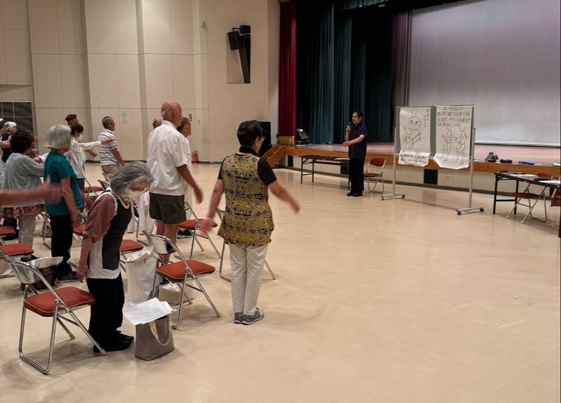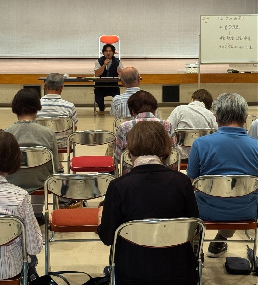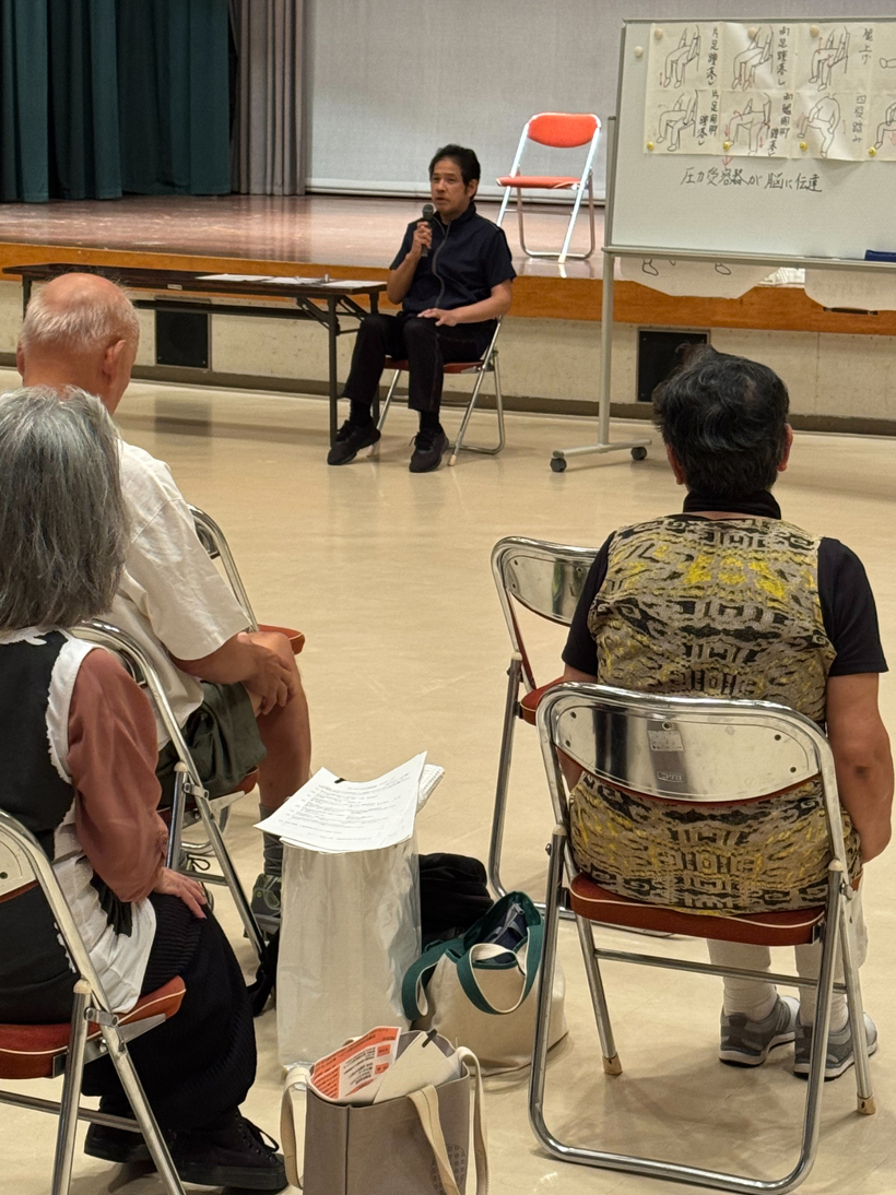 質問タイムには下肢の運動だけでなくて上肢にいい運動はありませんか?という質問に対して相撲のてっぽうの動きは上肢の動きにいいよと返していて参加者の皆さんも一緒に行いこれは効くわと笑顔もみえながら納得されてました!疲れたけど楽しかったという声もいただきました。