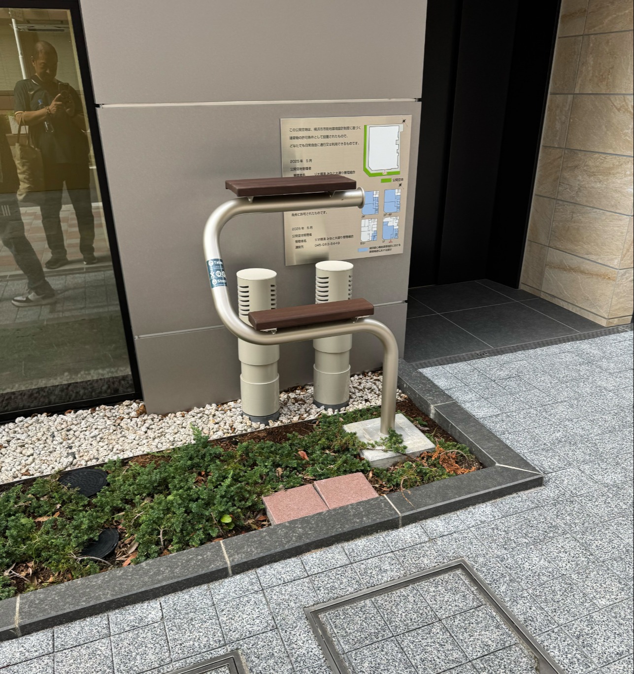 中華街へ向かう途中に街中ですっと座れる椅子を発見しっかり座りながら向かいました。