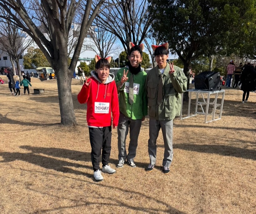 あといつも接骨院に来てくれてた高校生の陸上部の子達がファミリーマラソンの部でコスプレして走るというのを聞いていたので寒い外を待ちながら写真を撮る事が出来ました!