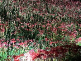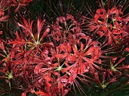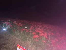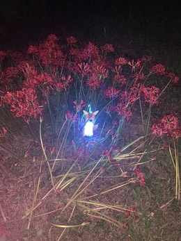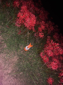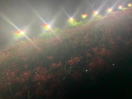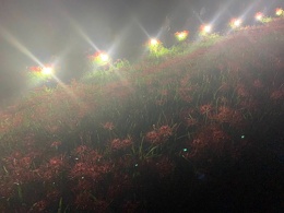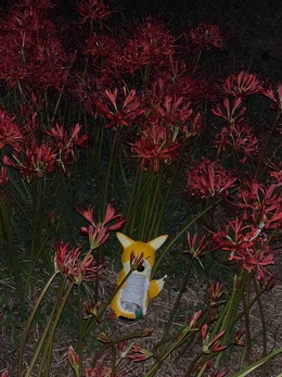 秋のお彼岸の頃、矢勝川の堤東西約1.5kmに渡って300万本の彼岸花が咲き乱れます。新美南吉の童話『ごんぎつね』に描かれたような「赤い布のようにさきつづく」風景がみられます。息を呑む美しさ! 昼間とまた違い夜は幻想的です。 ごんぎつねがライトアップされています。