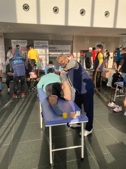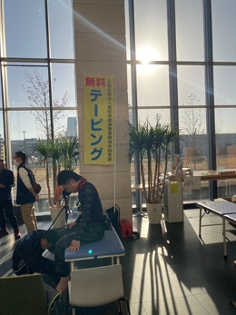 選手がスタートするのが8時台という事もあり主に選手が走る前のテーピングを行い、コンディションを整える事なので救護の集合時間が7時で家を出る時は辺りは真っ暗でした。