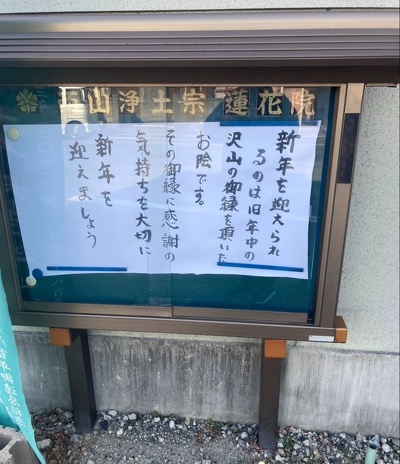 先週は阿久比健康マラソン大会が雨天中止になってしまいました。 今週は武豊町ゆめ太郎スマイルマラソン大会が開催されるので救護に行きます。 毎週土曜日の昼食を買いに行くがてら接骨院周りを散歩してるのですがその途中にある蓮花院という寺院の前に毎月ことばが張り出されていて楽しみにみているので皆さんもどうぞみて下さい! 寒い中ですが救護頑張ってきます。